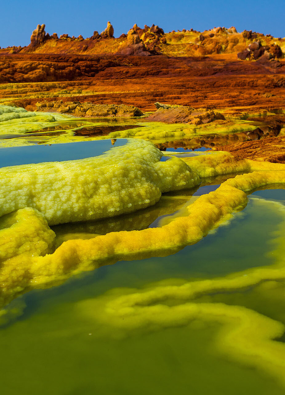 Embark on an early morning excursion to the otherworldly Dallol Volcano, known for its vibrant and surreal landscapes. Explore the colorful sulphur springs, salt flats, and unique mineral formations.
